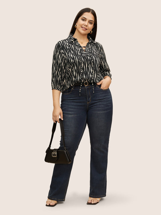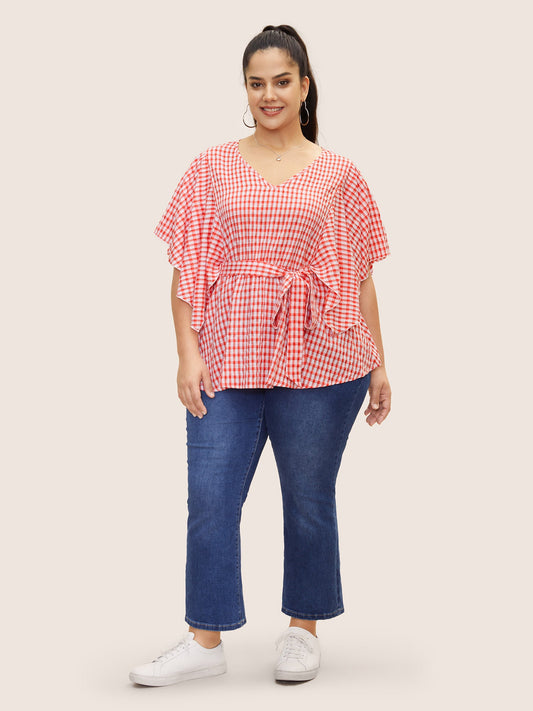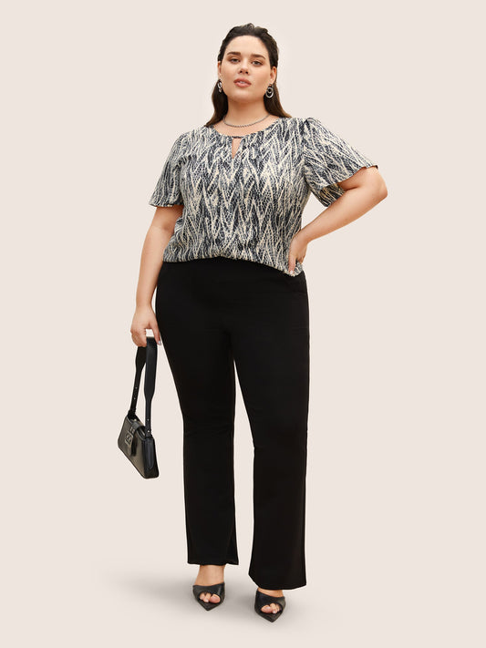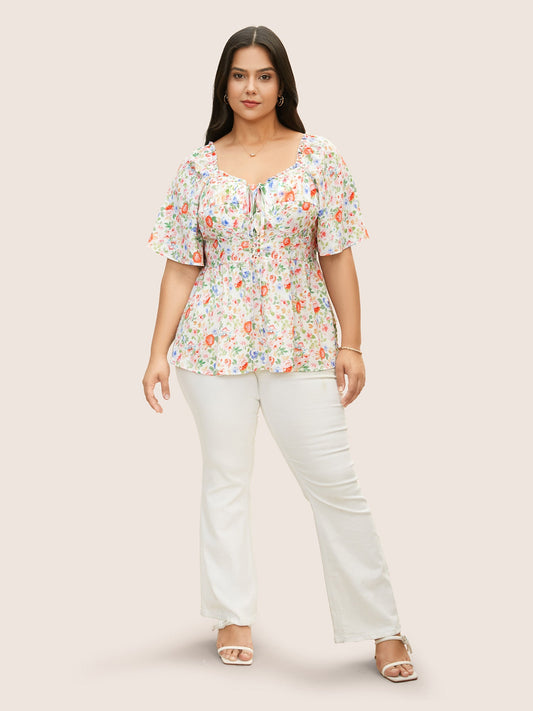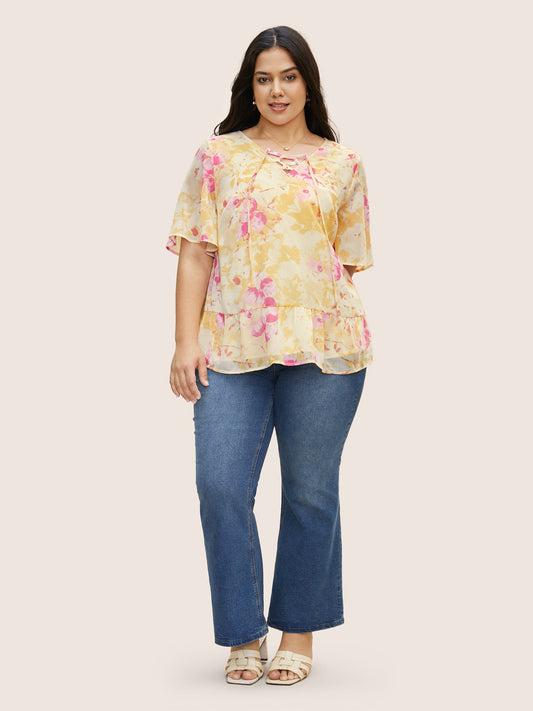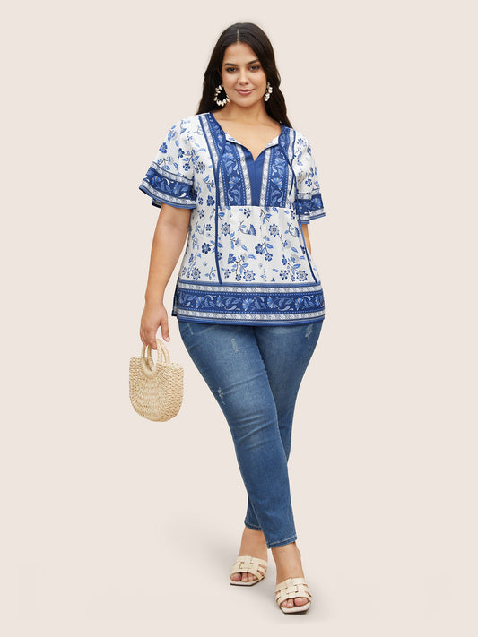 Boho Print Tie Knot Ruffle Sleeve Blouse