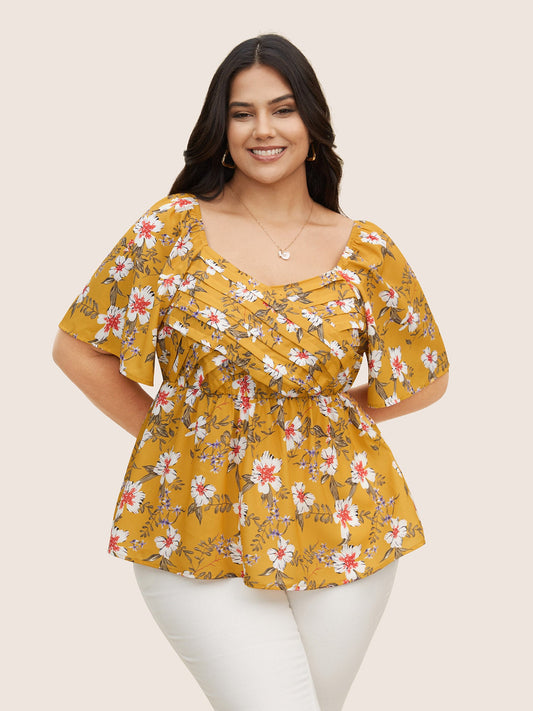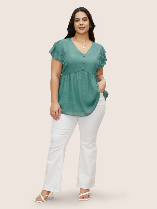 Tiered Mesh Pleated Ruffle Sleeve Blouse
