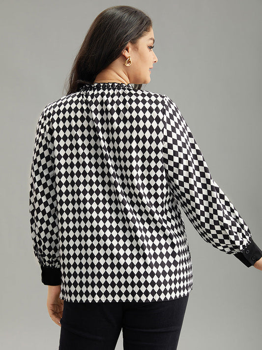 Halloween Check Frill Trim Gathered Patchwork Blouse