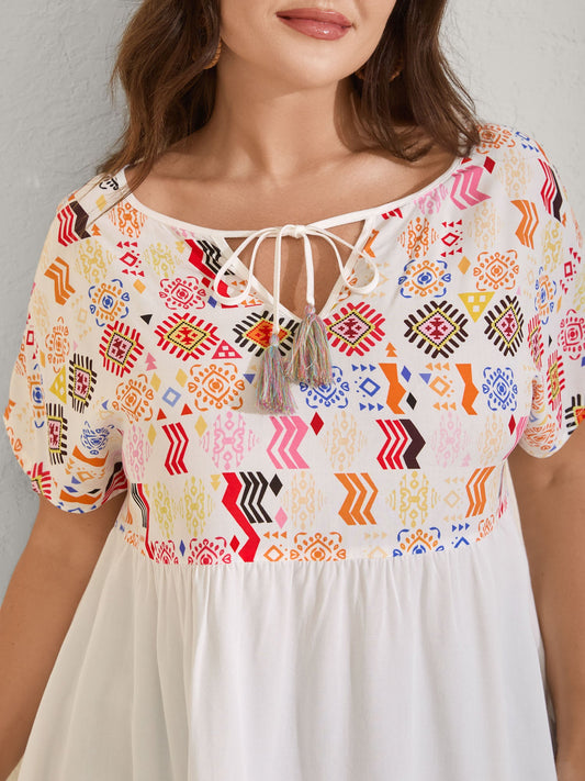 Multicolor Boho Stripes Woven Cut-Out Blouse