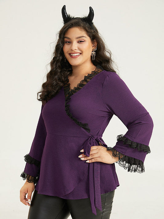 Halloween Contrast Eyelet Lace Wrap Layered Cuffs Blouse