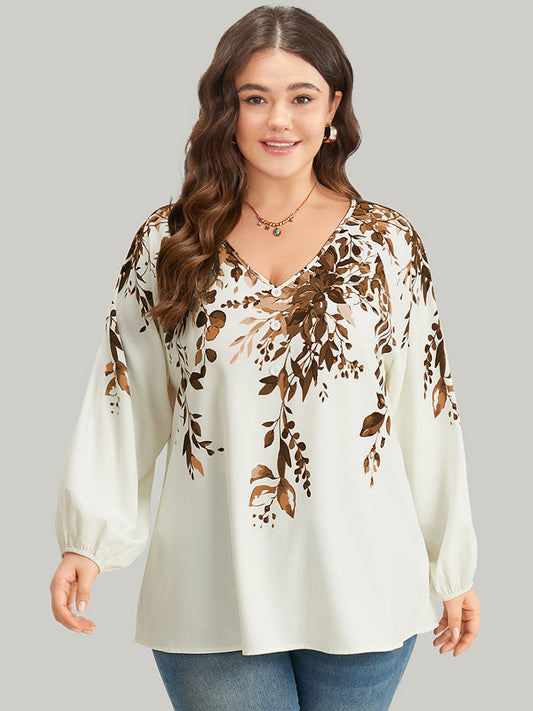 Leopard Suit Collar Elastic Cuffs Button Through Blouse