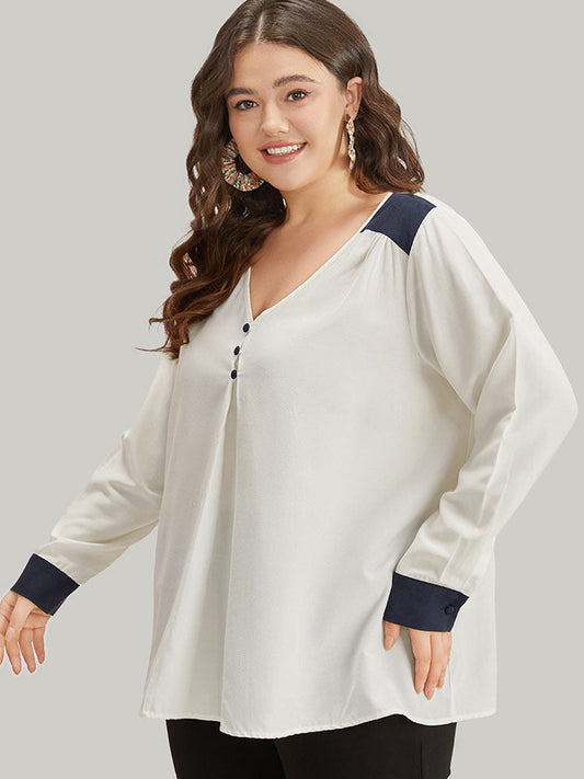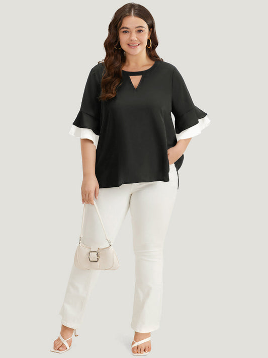 Anti-Wrinkle Plain Keyhole Ruffle Layered Sleeve Blouse