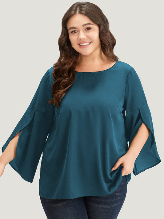 Plain Wrap Flutter Sleeve Crew Neck Blouse