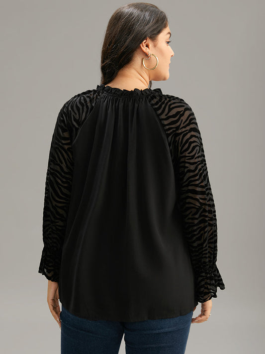 Halloween Zebra Print Tie Neck Frill Trim Patchwork Blouse