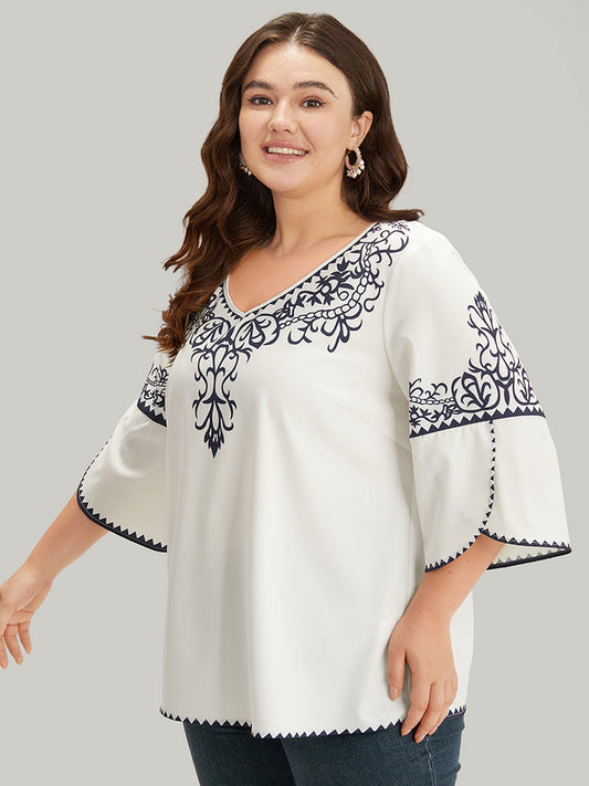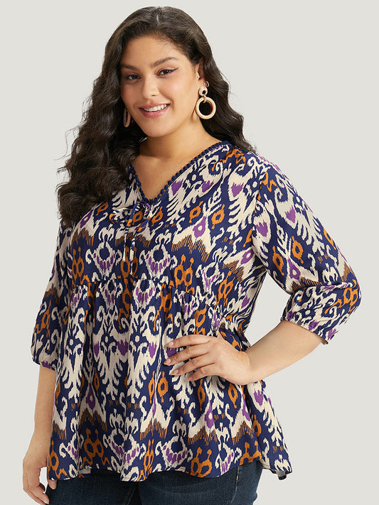 Boho Print Frill Trim Ruffle Layered Hem Blouse