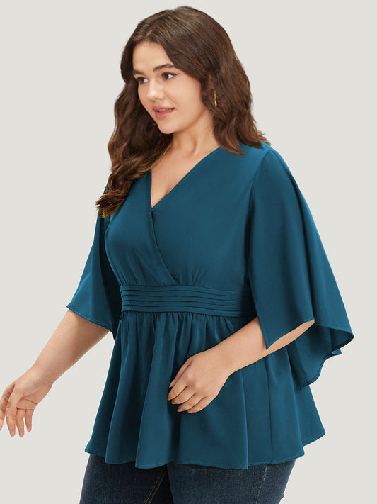 Anti-Wrinkle Plain Pleated Wrap Split Ruffles Blouse