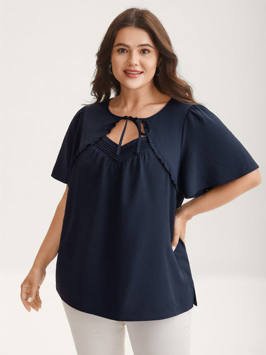 Bow Back Button Placket Solid Blouse