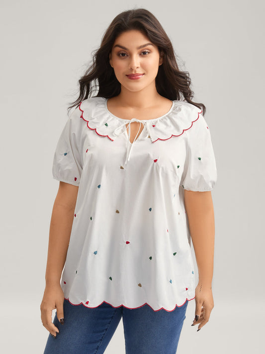 Sweetheart Embroidery Doll Collar Blouse