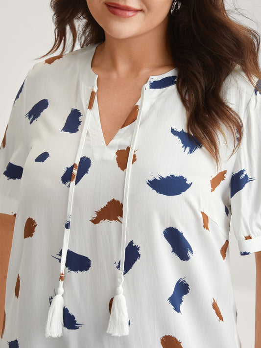 Brush Strokes Neck Tassels Blouse