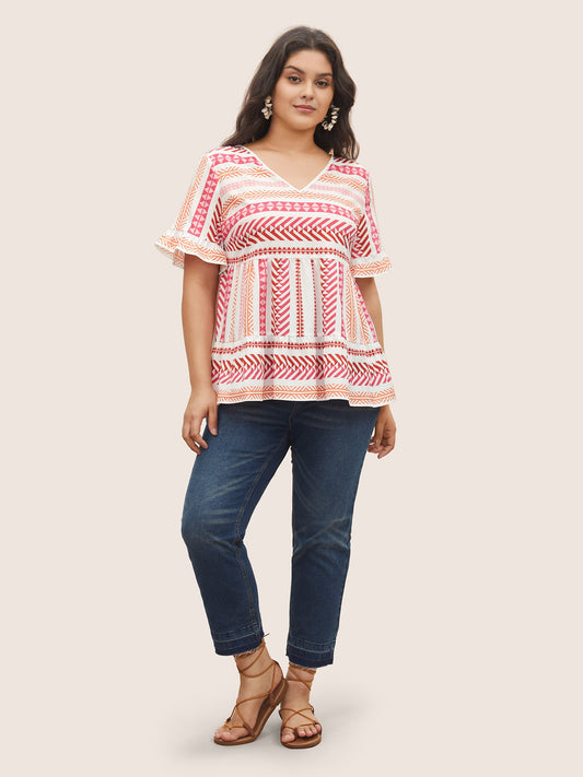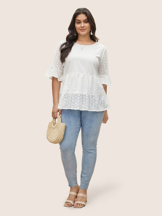 Broderie Anglaise Patchwork Flutter Sleeve Blouse