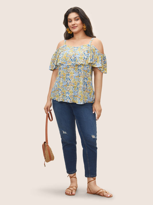 Floral One Shoulder Neck Adjustable Straps Blouse