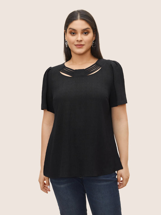 Stretchy Woven Wraparound Straps Cut Out Blouse