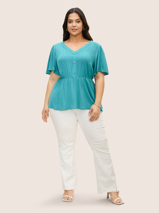 Cowl Neck Chiffon Mesh Flutter Sleeve Blouse