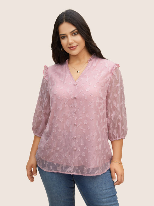 Chiffon Floral Frill Trim Ruffle Sleeve Blouse