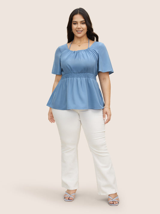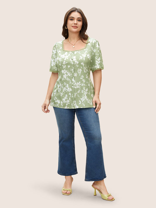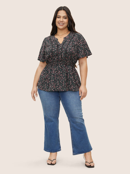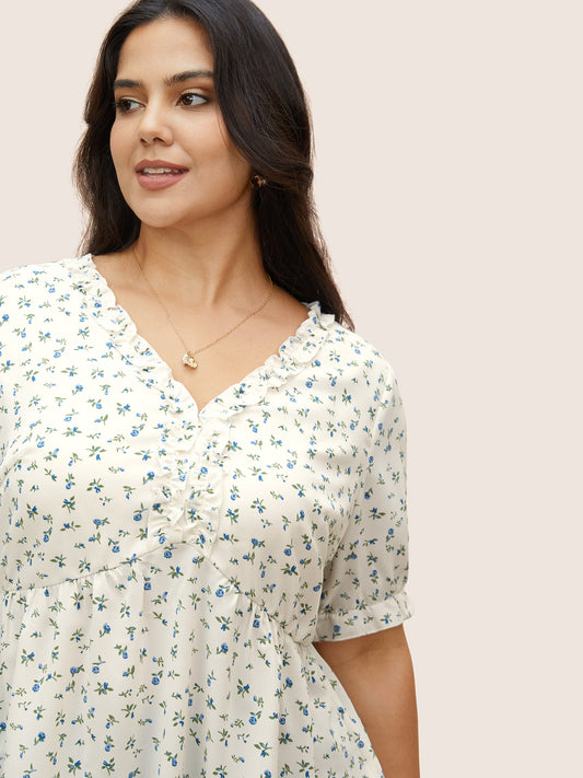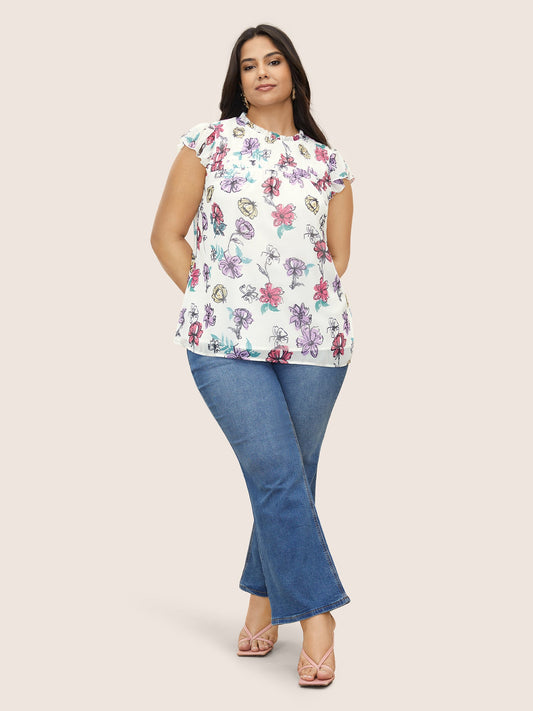 Floral Frill Trim Ruffle Cap Sleeve Blouse