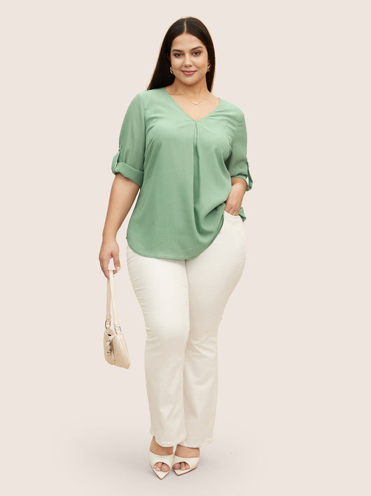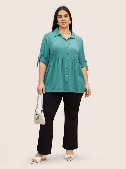 Rayon Shirt Collar Button Cuff Sleeve Blouse