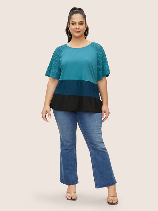 Colorblock Contrast Lace Panel Raglan Sleeve Blouse