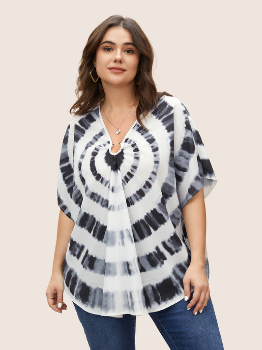 Tie Dye Metal Detail Batwing Sleeve Blouse