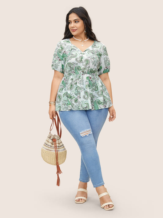 Ditsy Floral Shirred Lantern Sleeve Blouse