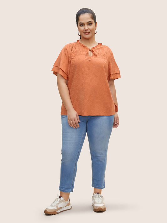 Texture Tiered Ruffles Gathered Frill Trim Blouse
