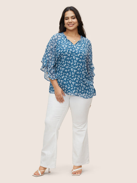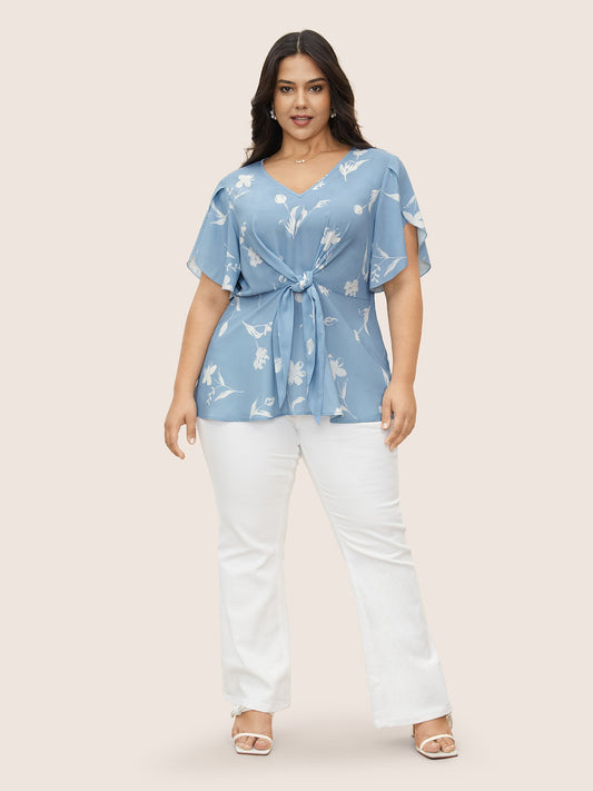 Floral Tie Knot Flutters Bell Sleeve Blouse