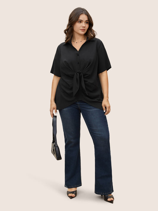 Plain Tie Knot Stretchy Woven Pleated Blouse