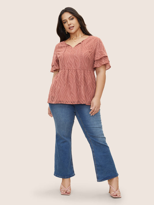 Synthetic Texture Tiered Ruffle Sleeve Blouse