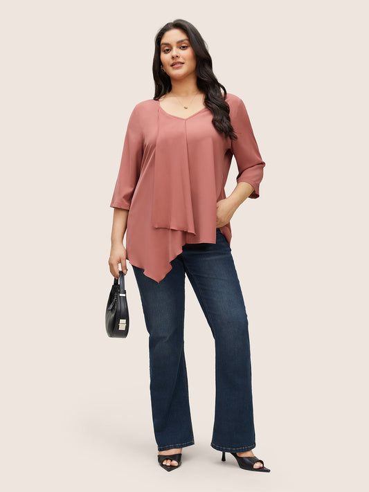 Static-Free Plain Asymmetrical Hem Patchwork Blouse