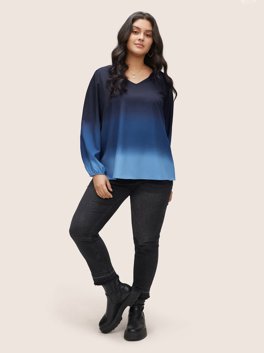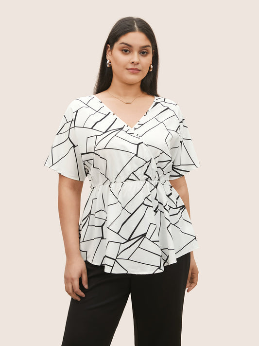 Geometric Overlap Collar Ruffle Sleeve Blouse