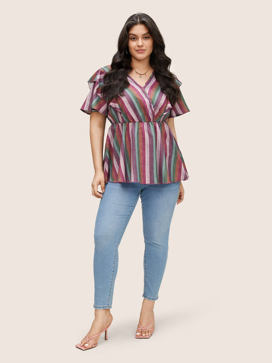 Striped Wrap Ruffle Layered Sleeve Blouse