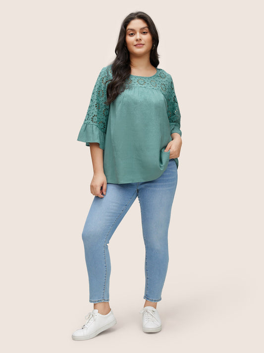 Plain Broderie Anglaise Ruffle Sleeve Blouse