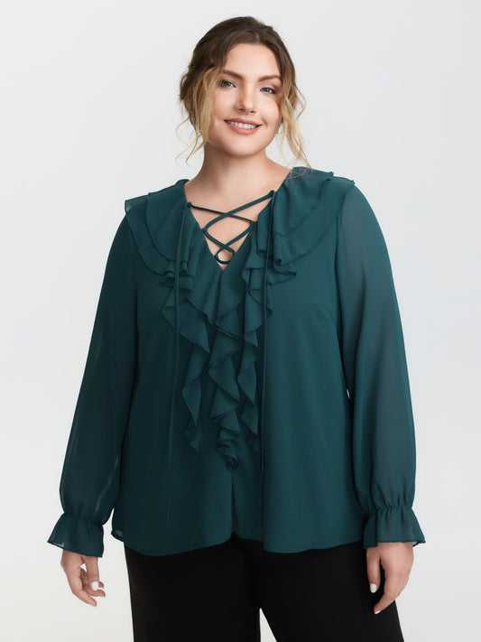 Chiffon Silhouette Flower Ruffled Neck Blouse