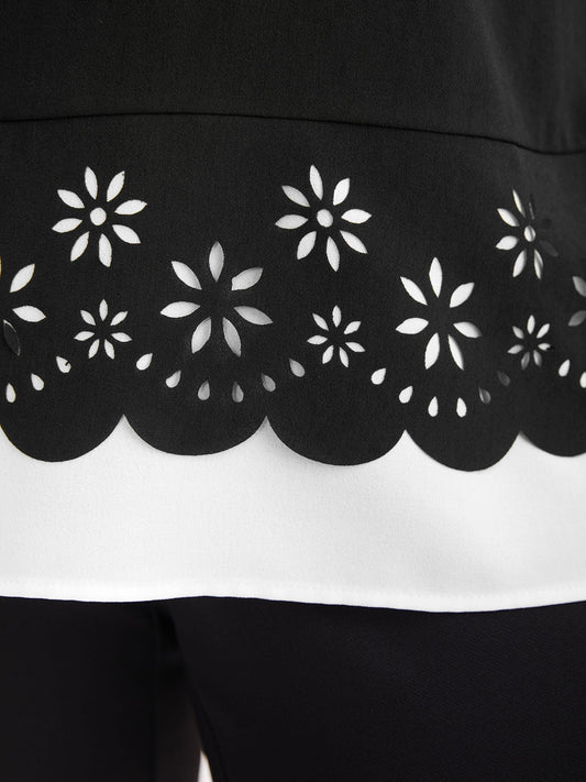 Laser Cut Patchwork Round Neck Blouse