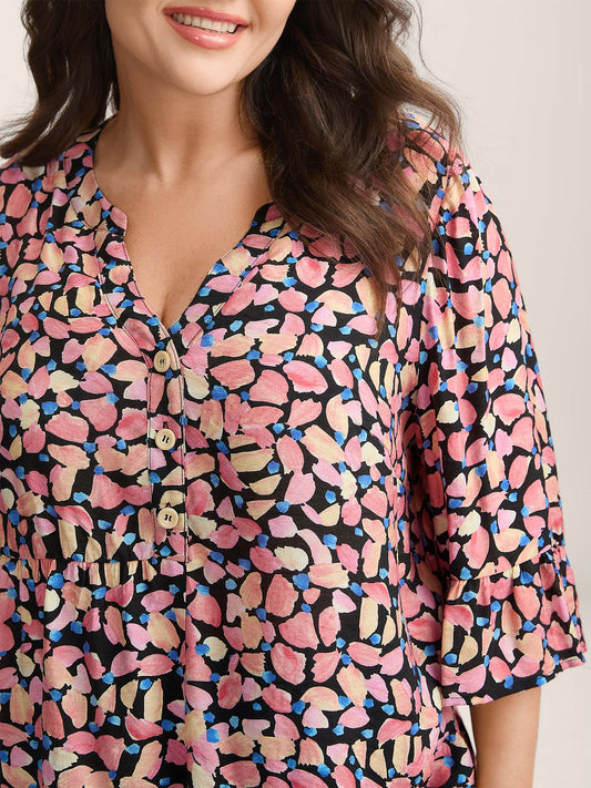 Floral Notched Collar Button Detail Blouse