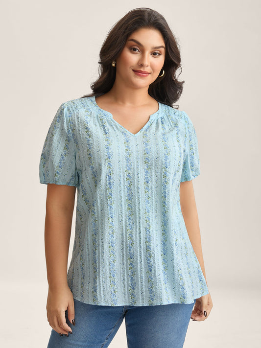 Cotton Floral Print Notched Collar Blouse