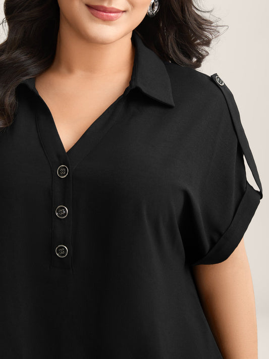 Button Placket Tab Sleeve Blouse