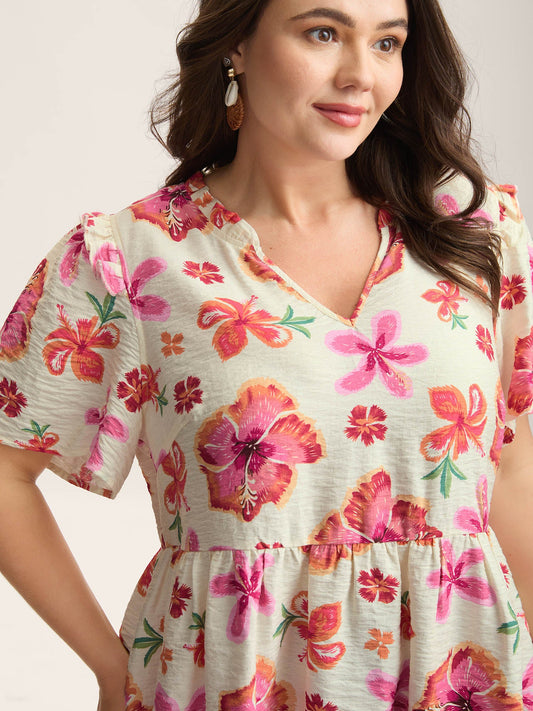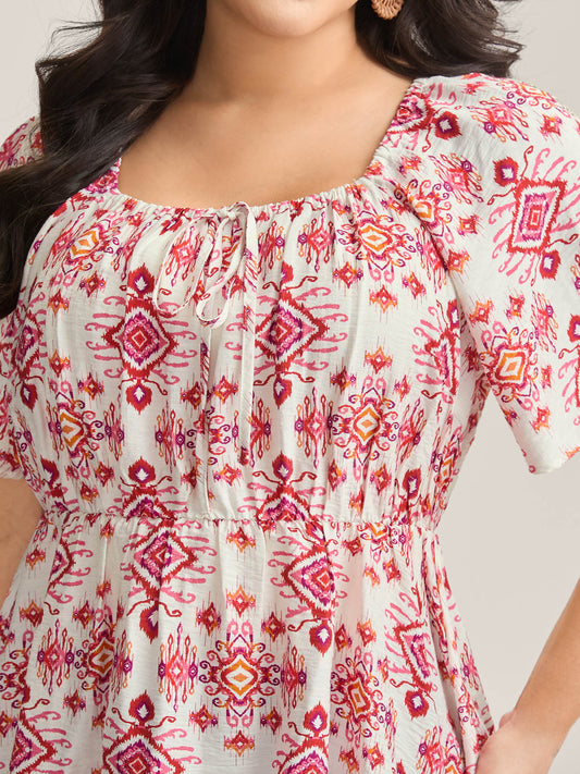 Floral Fiesta Pleated Square Neck Blouse
