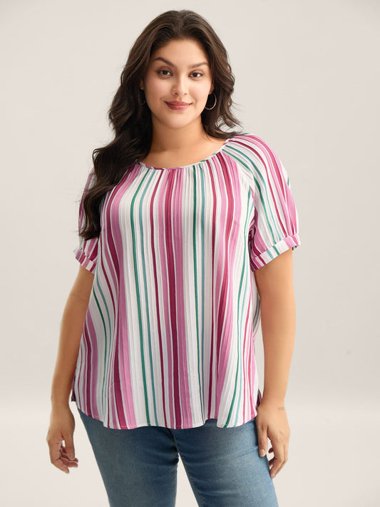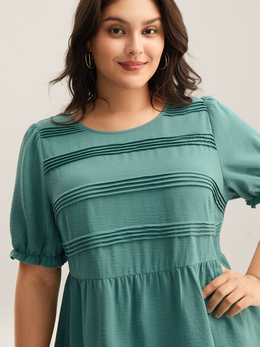 Rayon Shirred Neck Flutter Sleeve Tiered Blouse