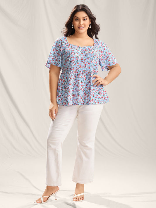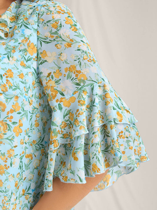 Bow Detail Plain Babydoll Puff Sleeve Shirt