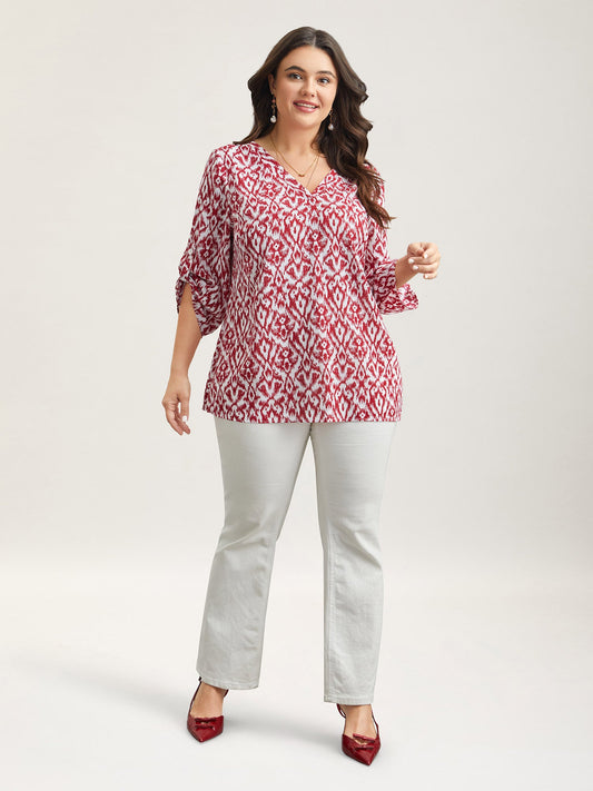 Ditsy Floral Pleated Flared Sleeve Shirt
