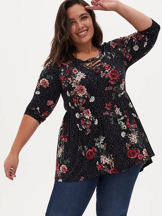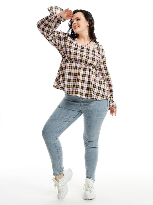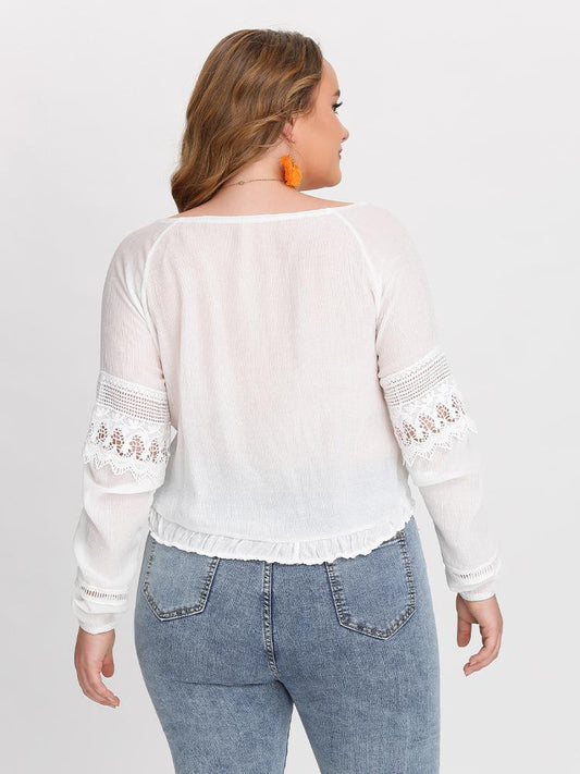 Knotted Notched Neckline Lantern Sleeve Blouse