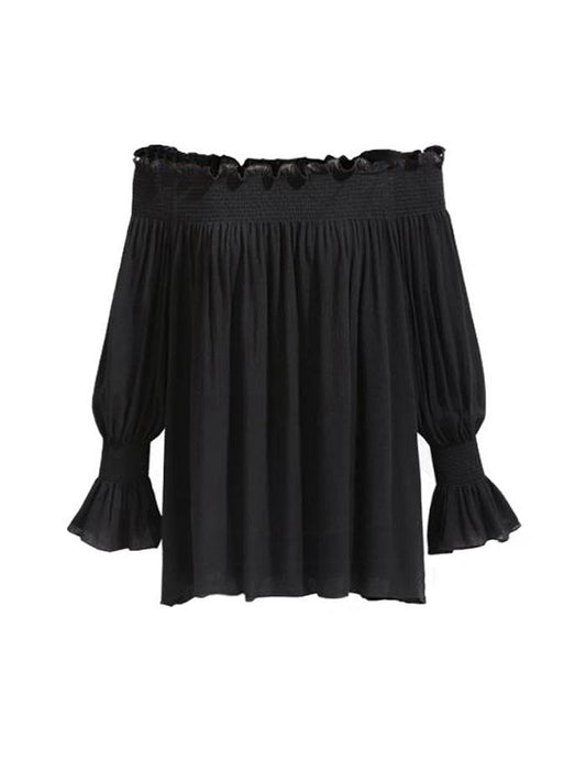 Shirred Off-Shoulder Lantern Sleeve Blouse