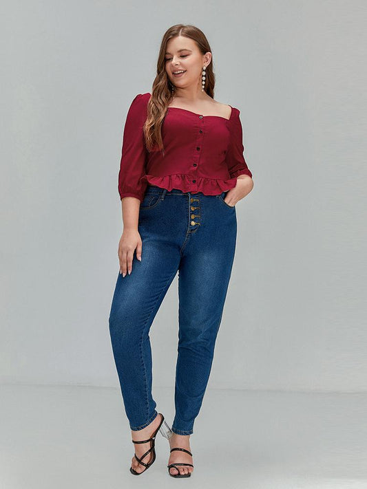 Spring Pattern Neck Cut-Out Pleated Shirt