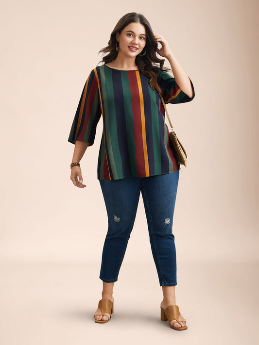 Multi-Color Striped Round Neck Shirt