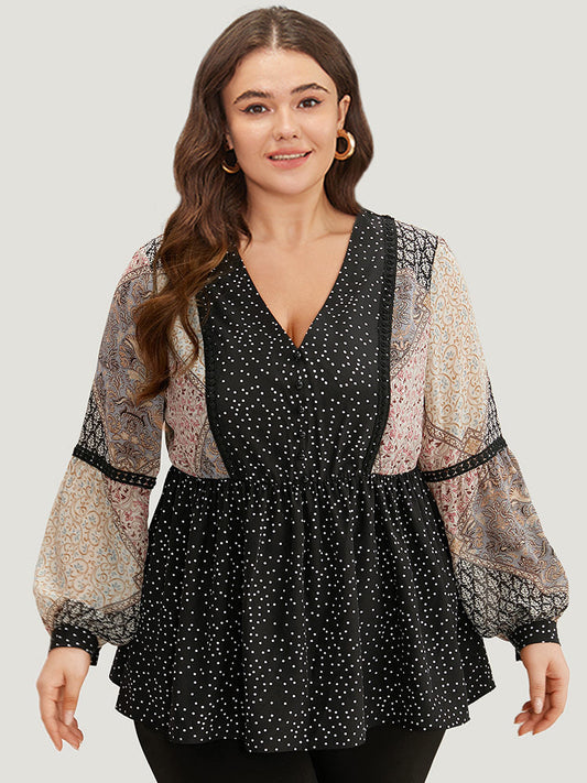 Chiffon Floral Keyhole Patchwork Flutters Blouse