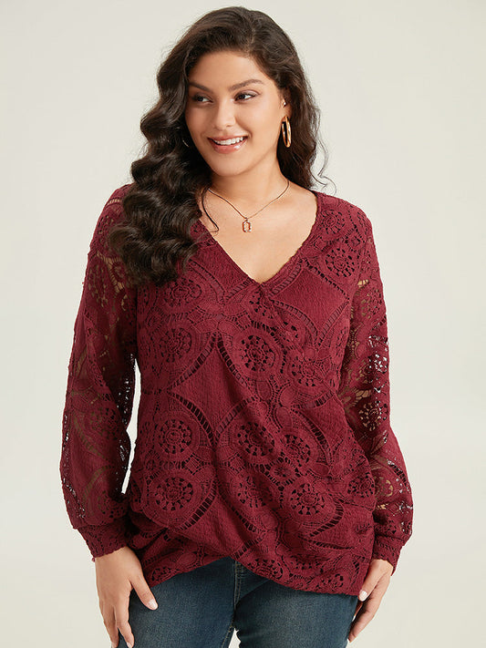 Plain Embroidered Guipure Lace Wrap Blouse