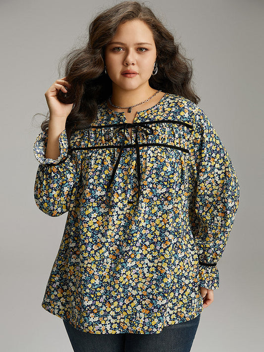 Ditsy Floral Ties Contrast Trim Blouse