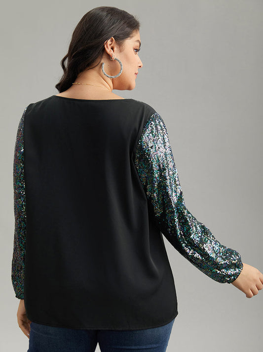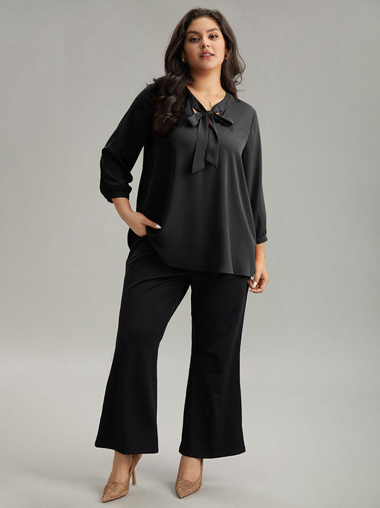 Plain Ruffles Elastic Waist Lace Patchwork Blouse