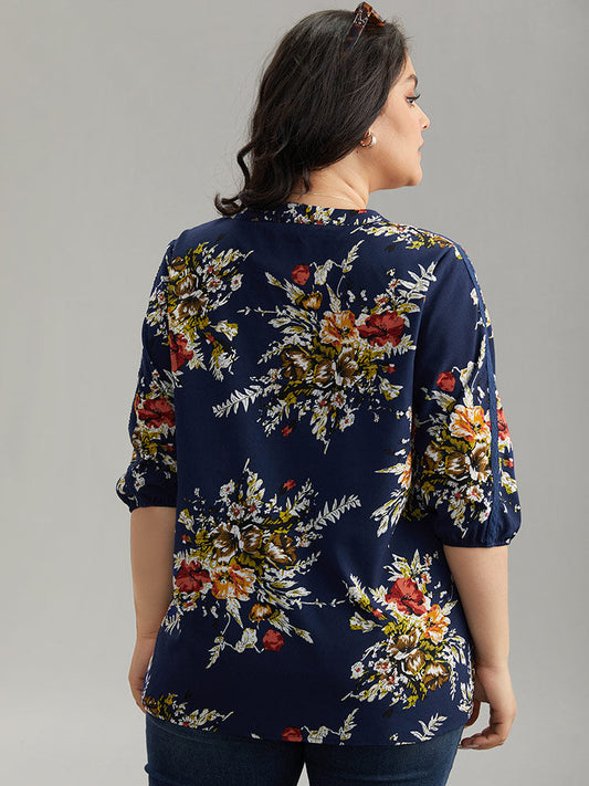 Ditsy Floral Shirred Patchwork Frill Trim Gathered Blouse